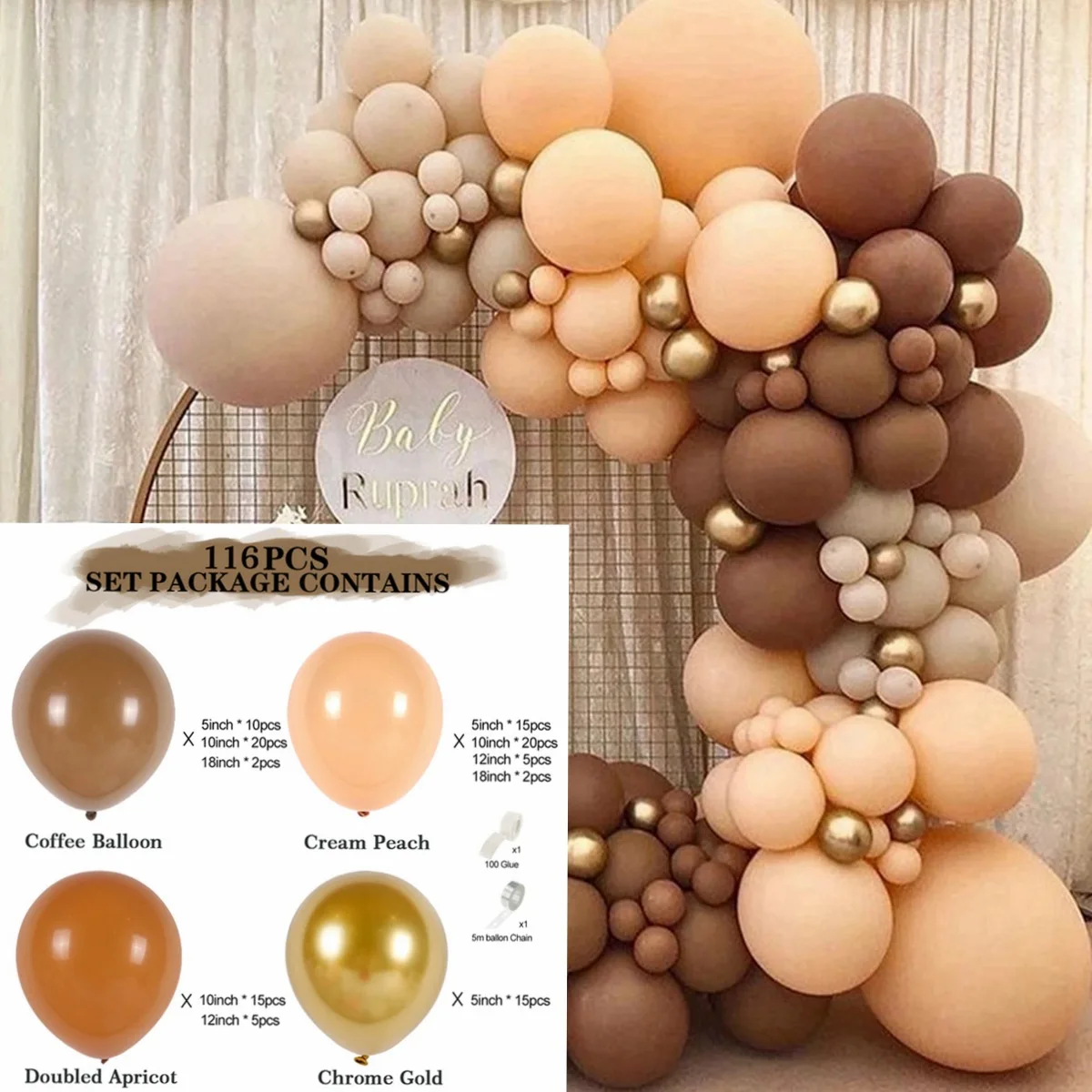 Item Name:: Brown Balloon Garland Kit Arch Stuffing Gender Reveal Balloons In Bulk Boho Light Jungle Cream Baby Shower Decorations